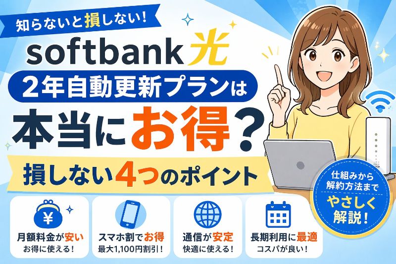 結論として、softbank光の2年自動更新プランは、長く使う人にはお得で、短期利用の人には自由度の低さがネックになりやすい契約です。